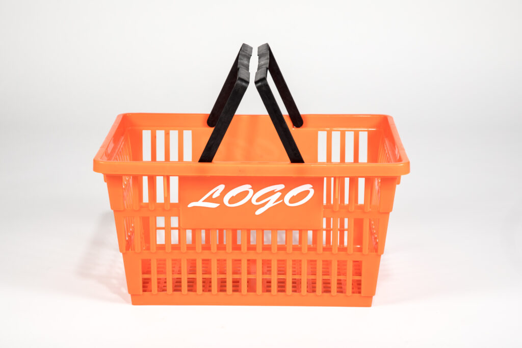 Our meticulously engineered plastic shopping baskets carry your brand and your contents!