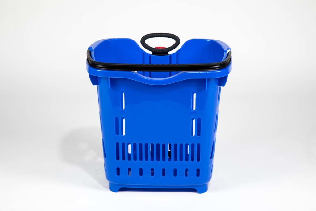 Seamlessly merging the convenience of a basket with the mobility of a cart, the Roller Basket is an ideal solution for shoppers with unique retail needs. Designed with impact-resistant polypropylene, locking telescopic metal handle, and heavy-duty wheel bearings, the Roller Basket highlights your brand identity and delivers an exceptional shopping experience.