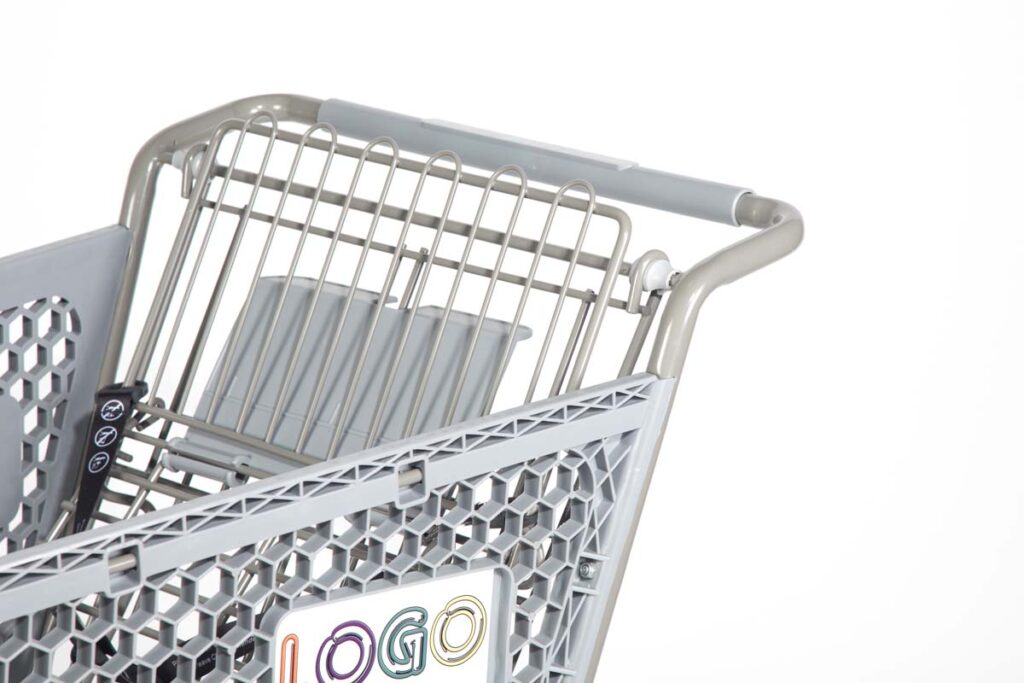 Our smallest premium plastic cart leverages a honeycomb lattice design with a steel ring top insert for superior, strength, function, and durability. With a thick baked enamel finish on metal parts and heavy-duty wheel bearings, the PC10 is both rust and squeak resistant – the ultimate shopping cart achievement! Available in four brilliant colors to match your brand, our 19-inch wide, high-quality plastic cart prominently displays your corporate logo and delivers a superior shopping experience.