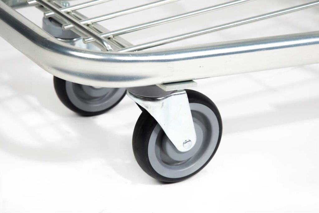 Our 10W Wire Shopping Cart prominently displays your brand logo on 3 panels. Its smaller frame is perfectly suited for more narrow store aisles. A bright zinc finish (reinforced with a second coat of clear powder) makes the 10W an ideal solution for any mid-sized wire cart application for a better, longer lasting cart appearance inside and outside your store. With a rust-resistant, baked enamel finish and heavy-duty wheel bearings that never squeak, the 10W’s impressive durability delivers optimal maneuverability in any sized commercial space.